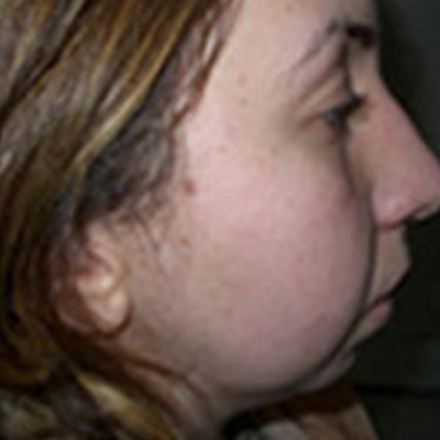 One of the most common jaw malalignments is a recessed lower jaw. Patients with this problem are more likely to have TMJ problems as well as muscular pain in the face. These patients are also more likely to have obstructive sleep apnea or snore. Below are some examples of patients that had lower jaw advancement to correct the alignment of their jaws. Some of these patients had dramatic improvement in their obstructive sleep apnea symptoms from the lower jaw advancement. (Please see our “obstructive sleep apnea” section if you have questions regarding this disorder.)